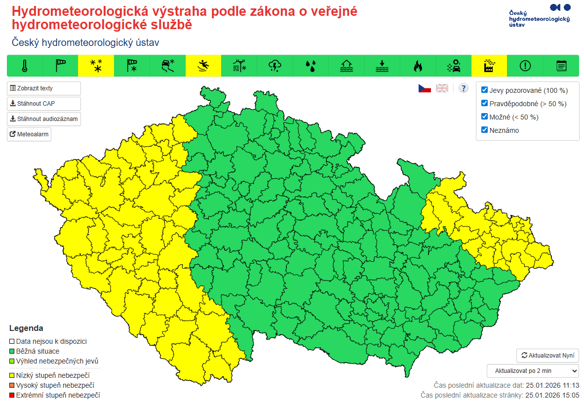 Pokud máte v plánu nedělní večerní vycházku nebo cestu autem, připravte se na komplikace. Podle aktuální předpovědi Českého hydrometeorologického ústavu nás čeká kombinace nepříjemných jevů, které mohou výrazně zkomplikovat dopravu i pohyb pěších.
