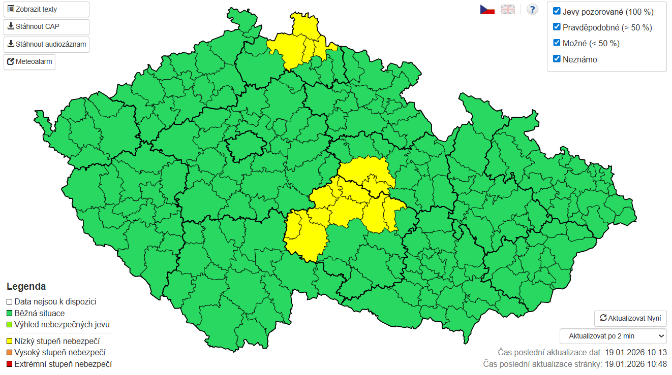 Paradoxně právě oblast, kterou čeká nejsilnější vítr, se může dočkat i nízké oblačnosti. Ta sice mírně přibrzdí noční vyzařování tepla, ale v kombinaci s větrem nepřinese žádnou úlevu. Naopak – mlžný opar může na silnicích kondenzovat a okamžitě namrzat. Silničáři na Vysočině budou mít pravděpodobně rušnou směnu.