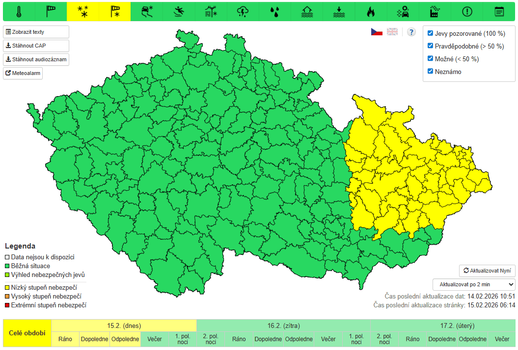 Dobrou zprávou je, že během dne začne od západu oblačnost ubývat. Postupně se tak dočkáme i slunečních paprsků, místy až skoro jasné oblohy. Tento vývoj přinese příjemnou změnu po několika dnech převážně šedivého počasí.