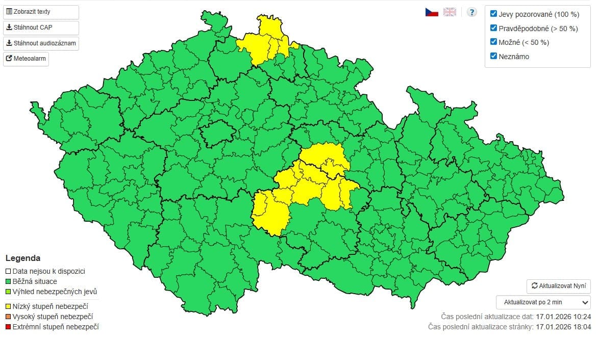 Na Českomoravské vrchovině a severozápadě Čech se navíc ojediněle objeví mrholení. I když nejde o vydatné srážky, v kombinaci s nízkými teplotami a silnějším větrem může být pobyt venku nepříjemný.